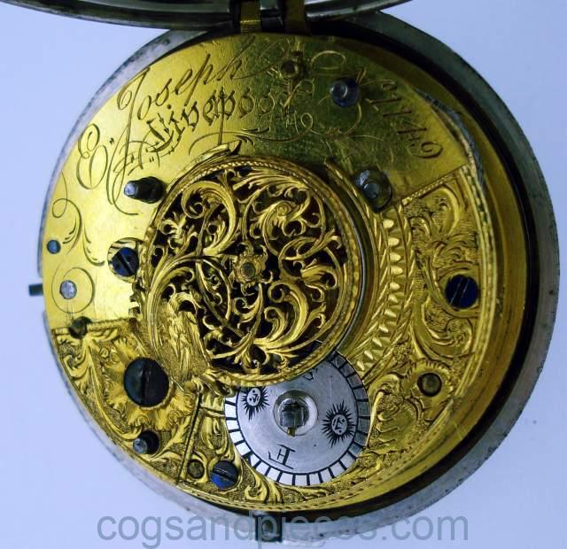 This is an excellent quality, large English silver pair cased pocket watch, in fine working condition, with a verge escapement fusee movement and overlapping seconds dial, made around 1794 by Elias Joseph in Liverpool.