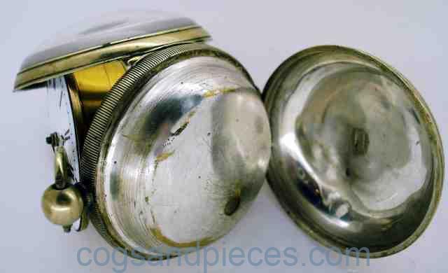 CASE : A later case (Victorian ?) though engraved with the movement number (7078). Silver plated over brass, about 47 mm in diameter. The case is in reasonable condition with a few bruises but the hinges are fine and it closes nicely. The high dome bull’s eye crystal is also fine.