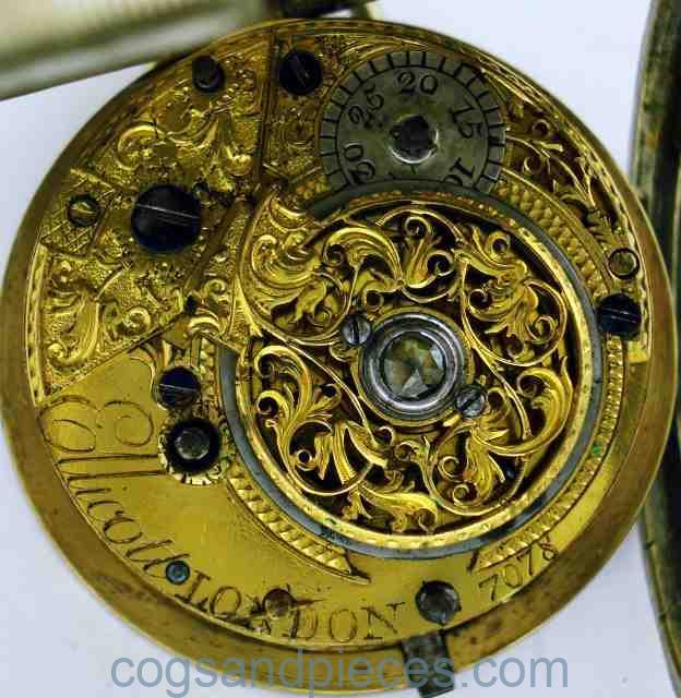 John Ellicott watches are numbered 6435 from 1770 and 7620 from 1780 so this watch (no. 7078) will have been made around 1775. From 1758 all John Ellicott watches were simply signed Ellicott.