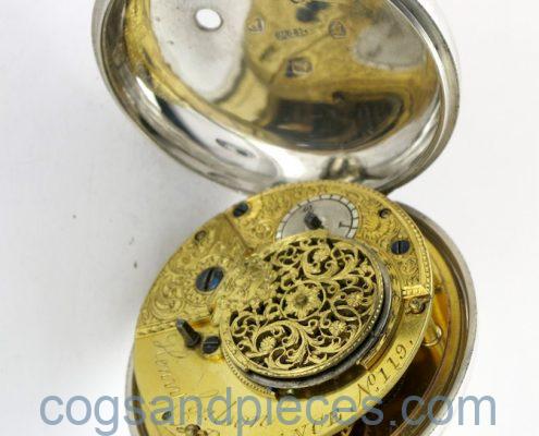 MOVEMENT : Gilt verge movement, with beautifully engraved and pierced balance cock and engraved plate. Signed and numbered (119). Four round pillars. In very good condition and running well.
