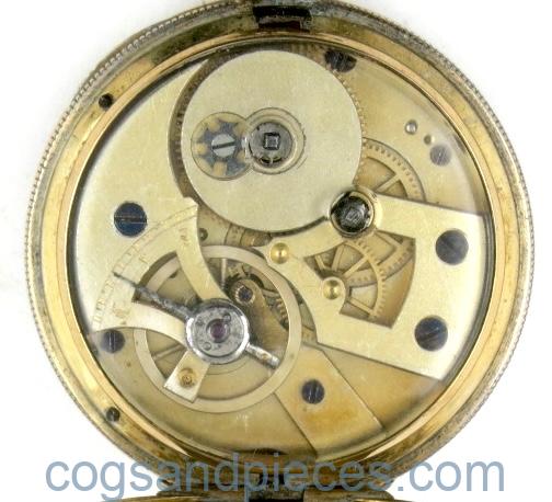 MOVEMENT : Good quality gilt cylinder movement, jewel endstone and blued steel screws. Very good condition. The movement is protected by a glass cover, which is hinged at 6, with holes to allow winding and setting.