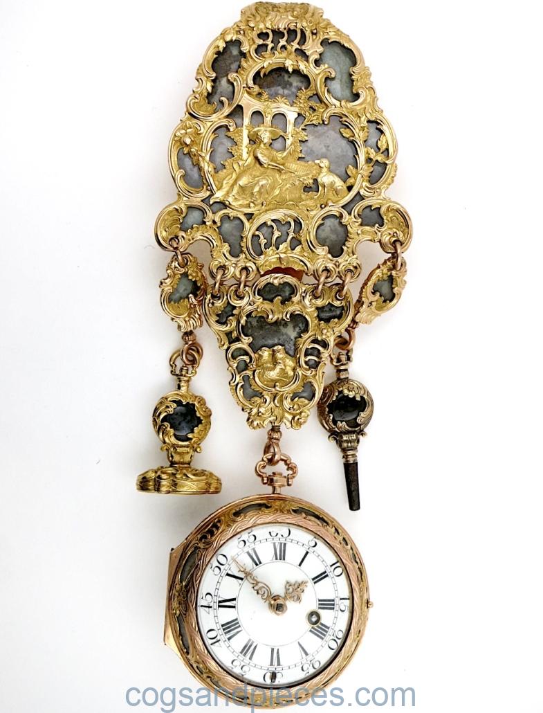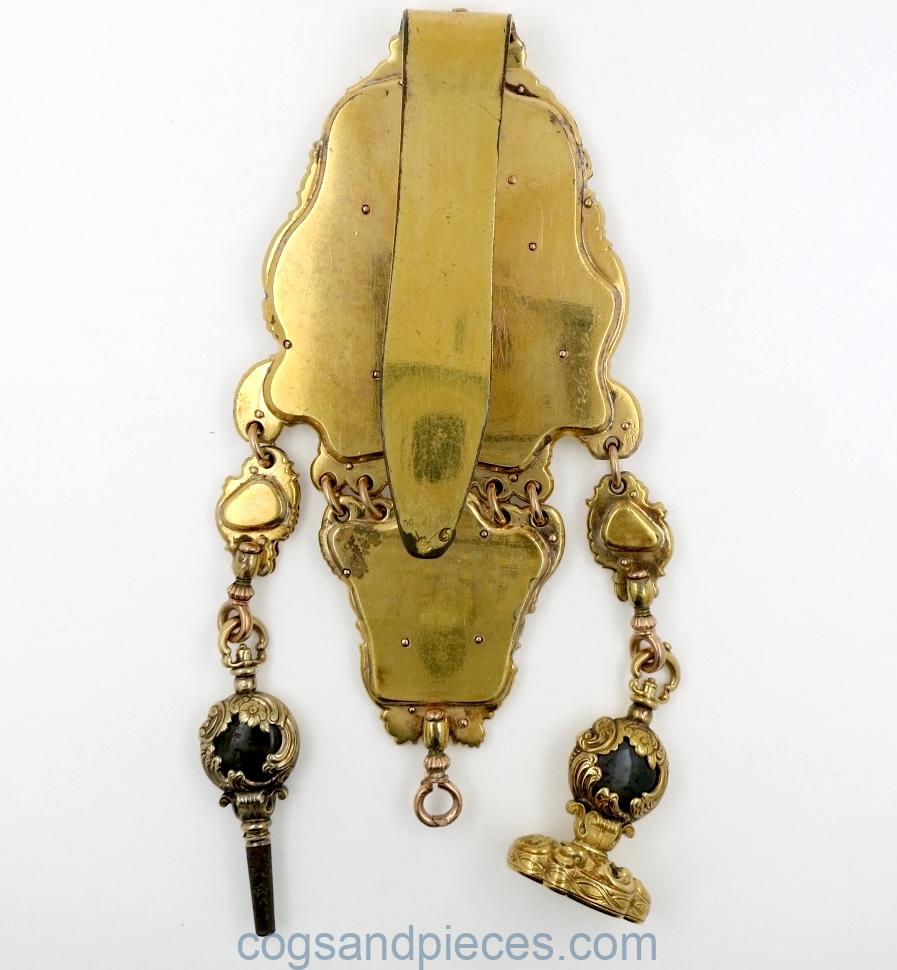 Exceptional repousse gold & agate Paris watch with matching chatelaine