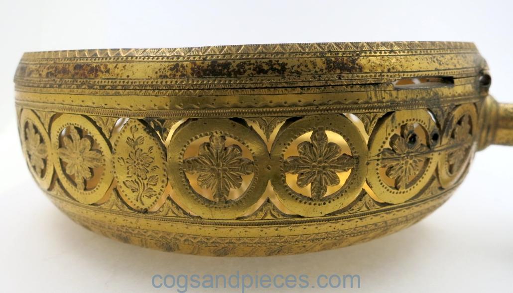 Engraved and pierced gilt brass, with large steel ‘C’ clip. Engraved :
